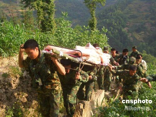 四川震区某摩步师党员突击队跋山涉水转移伤员