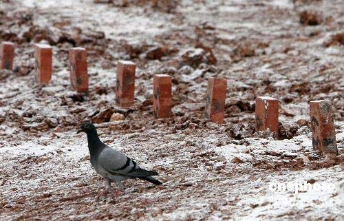5月22日上午,一只灰鸽从远处飞来,落在四川省什邡市洛水镇李冰村西北的山坡上,这里埋葬了108名“5.12”地震遇难者,他们的墓碑用砖代替,墓碑上没有名字,上面只有一个数字编号。 灰鸽久久伫立在这片洒满石灰粉的墓地,良久后,它沿着第二排砖碑向南缓缓踱去,头颈转向墓碑……走到尽头,然后它又侧身转向第一排砖碑,良久……当记者慢慢地轻轻接近它时,它并没有飞起,微微地昂起头,少顷,“咕咕”地叫几声,回望了一眼墓地,飞走了……中新社发 张晓理 摄