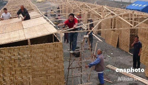 连日来,四川灾区群众不等不靠,自立互助抗震救灾。 中新社发 张晓理 摄