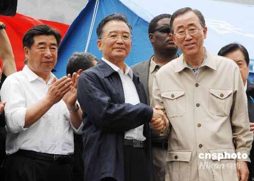 联合国和中国人民站在一起--潘基文到访映秀镇