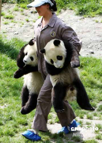 四川卧龙特别行政区,经历了5月12日的天崩地裂和至今不断的强烈余震后满目疮痍,损失极为惨重。位于山清水秀河谷中的中国保护大熊猫研究中心,被两岸倾泻的塌方巨石破坏得面目皆非,多个堰塞湖时刻威胁着该中心的安危。这个世界上最著名的人工圈养、繁殖、研究大熊猫的基地中,63只大熊猫失踪2只,多只受伤,转移近20只;其余的大熊猫只有在这个“孤岛”中忍受污浊的空气、嘈杂的机械轰鸣、啃食干瘪的竹子。据该中心饲养员介绍,地震之后许多大熊猫都发生了明显的心理变化,通常是焦躁不安,之后则郁郁寡欢,饲养员需要格外耐心哄劝关爱它们。中新社发 任晨鸣 摄