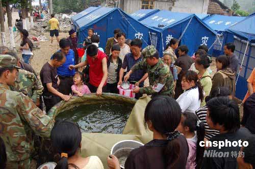 图:解放军为地震灾区送安全饮用水