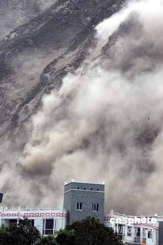 图:四川25日余震引起山体滑坡