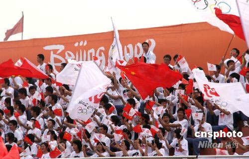 图:江苏泰州民众为奥运圣火传递欢呼