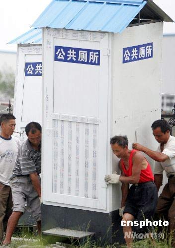 都江堰安置受灾民众营修建清洁公共卫生间