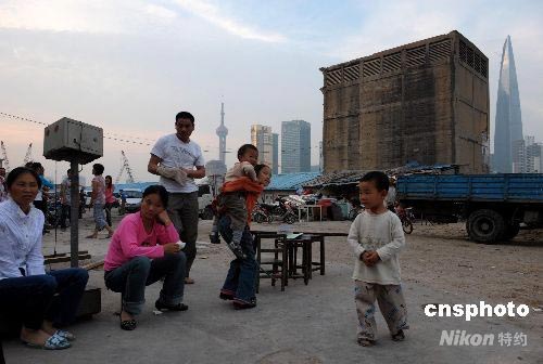 五月下旬,来自四川的农民工在上海外滩的工地宿舍里。随着四川地震灾区救灾工作的不断进展,生活在外地的四川人又开始了平静的生活。中新社发 廖攀 摄