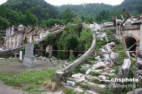 领报修院是全国重点文物保护单位,位于彭州市白鹿镇以北2.5公里回水村,距成都77公里,俗称“白鹿上书院”。在汶川8.0级大地震发生后,这座有100多年历史的老教堂坍塌。中新社发 杨杰 摄