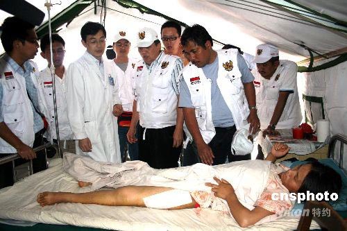 5月30日,印度尼西亚国际医疗队正在救治陇南文县的灾区群众,这支20名由外科、内科、儿科等医生组成的医疗队将为灾区群众提供医疗救助。中新社发 刘二银 摄