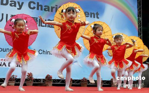6月1日上午,北京宋庆龄故居举行“一切为了孩子——2008国际儿童节爱心慈善会”,幼儿园小朋友表演舞蹈节目。该活动为中国宋庆龄基金会和中国日报共同举办,部分驻华使节、国际组织驻华机构代表以及海内外企业、北京市少年儿童代表出席。会上,为四川汶川大地震抗震救灾举行的慈善捐款募得数十万元人民币。中国宋庆龄基金会总计已接收企业和个人捐款、捐物总计3880.01万元,已拨付灾区903万元现金和1154万元物品。中新社发 邹宪 摄
