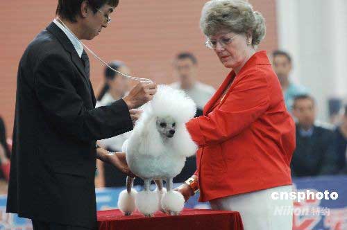 6月1日,大连第一届兴达杯国际名犬邀请赛在大连世界博览广场落幕。总冠军四个大奖均被北京摘得。本届名犬邀请赛为期两天,来自美国、日本、韩国、泰国等世界各地的60多个犬种、200多只名犬报名参加本届大连国际名犬邀请赛,其中单价最昂贵的一只价值100多万元,其中不少名犬都参加过具有国际资质的名犬大赛,有10余只获得过这些国际大赛的最高奖项。中新社发 刘德斌 摄