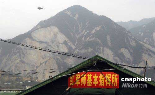 6月2日下午,多支解放军部队官兵调集四川汶川映秀山区,从空中、地面展开立体搜寻失事直升机任务。中新社发 陈文 摄