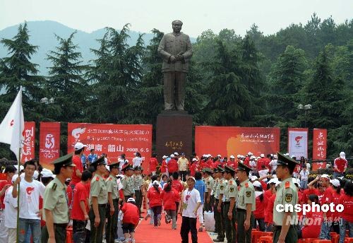 6月5日,奥运圣火湖南湘潭、韶山站传递结束庆典,在韶山的毛泽东铜像广场举行。仪式结束后,民众仍久久不愿离去。中新社发 廖攀 摄