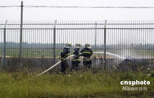6月5日,湖北襄樊消防官兵紧急出动扑灭机场跑道大火。当天,襄樊机场飞行区因周边农民焚烧麦秸,引起跑道一千多平方米的草坪失火,所幸当天该机场飞至广州的航班已经飞离机场,加之扑救及时,没有造成严重后果。中新社发 杨劲松 摄