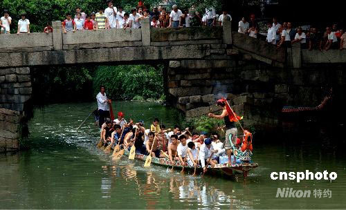 6月6日,福州台江南公万寿村村民按当地百年民俗在环村内河举行端午龙舟竞渡。据当地老辈村民称,自清朝道光年间开始,该村就有端午节龙舟竞渡风俗,沿袭至今。中新社发 刘可耕 摄