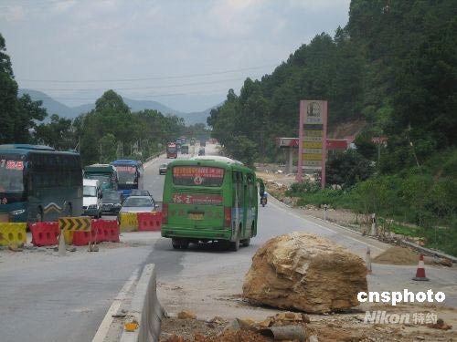近日,广东连日的强降雨造成国道321线肇庆境内沿线至少有4起以上大、小山体滑坡,由于当地公路部门及时抢修,并采取部分路段单向行驶的措施,该路段未造成车辆堵塞现象。中新社发 黄耀辉 摄