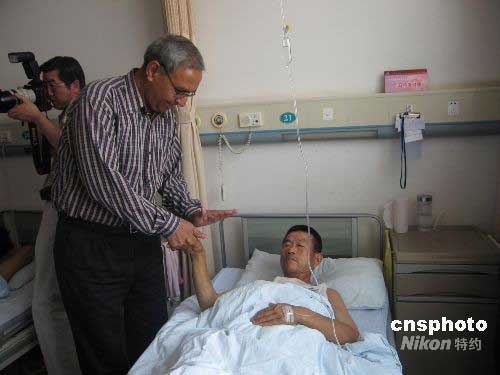 6月11日上午,即将回国的巴基斯坦国际医疗队专程到兰州大学第一人民医院,看望慰问地震伤员病情,询问康复情况。中新社发 刘薛梅 摄