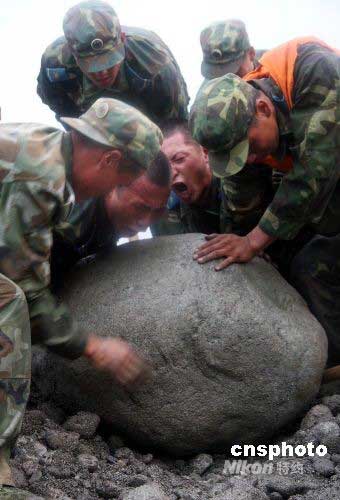 图:救援官兵成功封堵绵远河大堤溃口(2)