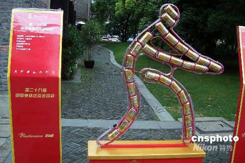 6月14日,一组用易拉罐组成的雕塑亮相上海新天地。雕塑展现了从1896年4月6日在希腊雅典召开的第一届现代奥运会到2008年8月8日将在中国北京举行的第29届奥林匹克运动会的体育项目。中新社发 周东潮 摄