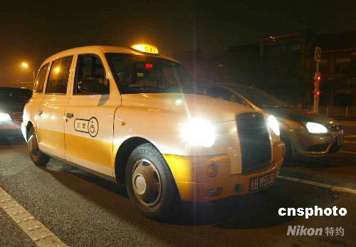 包括30辆英国“老爷车”(图)在内的首批70辆残疾人专用出租车,开始在北京投入运营。运营方式主要为电话叫车,乘客可拨打961001提前两小时预定,也将有少量车上路随机“拉活”。残疾人专用出租车的运营价格将和目前一般出租车运营价格一样。中新社发 富田 摄