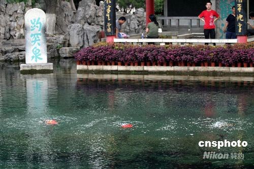 2008年6月25日,济南市趵突泉地下水位跌破28米橙色警戒线,三股水失去了“生机”。当天,趵突泉地下水位跌破28米橙色警戒线。 按照济南市制订的保泉预案,一旦水位达到或低于28.00米的预警线,政府部门将发布橙色预警,并启动二级保泉应急预案。中新社发 龚辉 摄