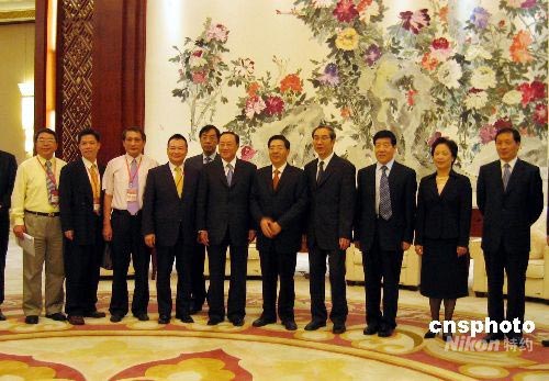 6月26日,国民党副主席关中出席第三届两岸产业共同市场研讨会,第三届两岸产业共同市场研讨会暨第四届桂台经贸合作交流会为期三天。图为广西壮族自治区区委书记郭声琨(右五)会见关中(右六)。中新社发 夏晓弘 摄