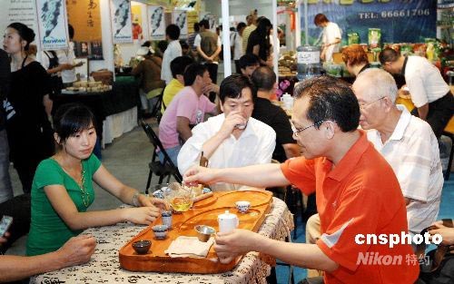 7月3日,为期4天以“绿色、健康、茶文化”为主题的2008大连第四届国际茶博会暨世界华侨华人以茶会友大会在大连星海会展中心开幕。本届茶博会,共设展位200余个。展会期间除举办茶叶、茶具壶、茶艺赛外,还将举办“东北暨环渤海地区茶博览第二次峰会”、“以茶会友”文艺演出、茶健康知识讲座、茶叶推广会、现场炒茶表演等十大活动。中新社发 刘德斌 摄