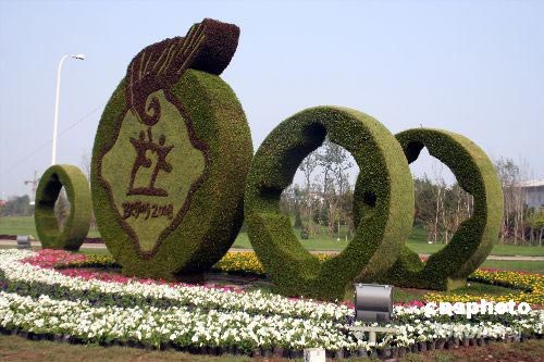 2008年7月4日,辽宁省沈阳市浑南新区又一个立体花坛完工。据悉,沈阳市城市建设管理局以“喜迎奥运、地方人脉、自然生态、和谐发展”为主题,通过举办立体花坛大赛,在沈阳主要街路、广场等处建设20个具有浓郁奥运特色的立体花坛,为奥运增彩。中新社发 刘宝成 摄