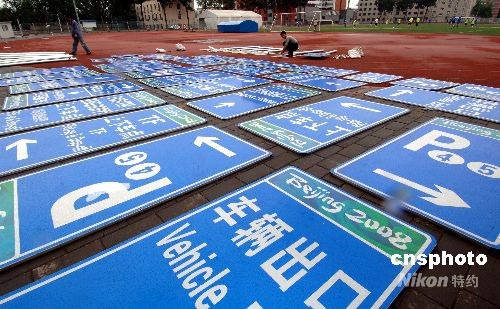 奥运临近,中国农业大学摔跤馆的工作人员正在紧张布置奥运相关设施。距离北京奥运会开幕仅剩一个多月的时间,许多奥运场馆正在有条不紊的进行收尾工作。中新社发 王东明 摄