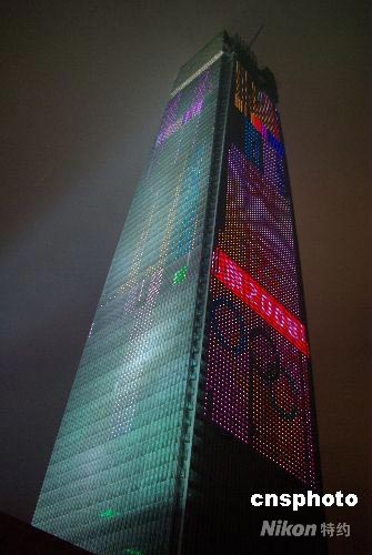 图:"首都第一高楼"五彩幕墙显奥运元素