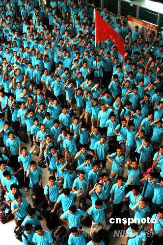 2008年7月11日,来自山东科技职业学院的北京奥运会安保志愿者准备出发,奔赴北京。当日,山东科技职业学院700多名北京奥运会安保志愿者整装赶赴北京,准备从事北京奥运会安保志愿服务。据了解,2008北京奥运会期间,山东科技职业学院共有3000名大学生去北京担当安保志愿者,这些志愿者将分八批在近日内抵京。