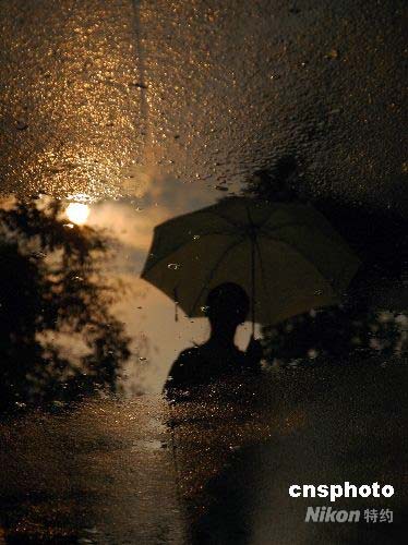 7月12日中午,突如其来的一场太阳雨给闷热的南京降了降温,20分钟后,雨势暂歇。中新社发 willis 摄