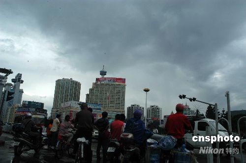 2008年7月18日,受今年第7号台风“海鸥”影响福州上空乌云密布,天空中下着雨。据福建省气象台报告,今年第7号台风“海鸥”,将对福建省中北部沿海造成较大影响,并可能于当日下午到夜间在福州连江与浙江温岭之间沿海登陆。中新社发 张 斌 摄