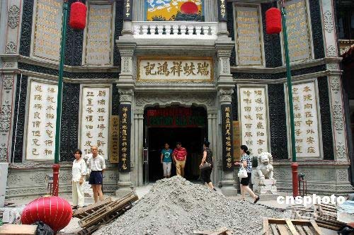 7月24日,北京前门大街及大栅栏商业街和粮食店街等街道的修缮基本完工。图为瑞趺祥鸿记已经开店营业。作为2008北京奥运特色商业街之一的大栅栏是北京最古老、最著名且又别具一格的古老街市和繁华的商业闹市区。中新社发 张双双 摄