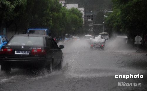 受今年第8号强台风“凤凰”的外围影响,7月28日上午,浙江温岭市普降暴雨,局部地区大暴雨,沿海海面风力9-10级,并逐渐增强到10-11级。短时间的强降雨使部分路段积水,给市民出行造成了不便。中新社发 吴鹏飞 摄
