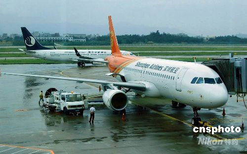 随着台风“凤凰”渐行渐远,七月三十日,福州机场航班全面恢复正常,迎来旅客出行高峰。截至十八时,已有五十八个航班正常起飞。由于“凤凰”登陆地点在长乐机场附近的福清市,长乐航空港倍受影响,二十八日和二十九日,共有一百七十二个航班被取消,造成大量旅客滞留。图为等待起飞的深圳至大阪的中转飞机。中新社发 龙景定 摄