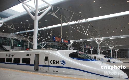 京津城际列车将于8月1日投入运营,国产“和谐号”列车将以每小时350公里的速度行驶在两座城市之间。该车分为一等车厢和二等车厢,价格分别是69元和58元。单程行使时间仅为29分钟。中新社发 Eddie Zhang 摄