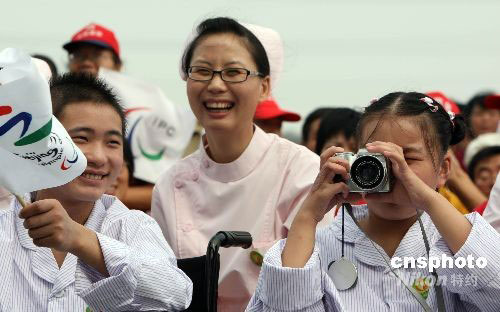 图:汶川地震灾区儿童上海喜迎残奥会火炬