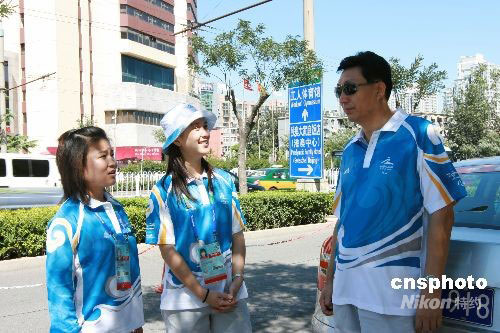 9月1日,随着北京奥运会渐渐远去,残奥会临近了。在奥运会上大展风采的志愿者们又换新装匆匆上岗了。图为来自北京师范大学教育系的研究生们在残奥大家庭总部饭店的港奥中心车辆调度站为远来的客人们服务。中新社发 筱诗雨 摄
