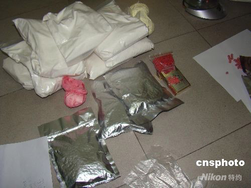 海口警方九月四日公布破获一起特大贩卖毒品的案件,缴获毒品十公斤,抓捕毒贩十名,是今年以来海南省破获的最大宗贩毒案,毒品品种包括海洛因、冰毒、K粉、摇头丸等六七个品种。中新社发 王辛莉 摄
