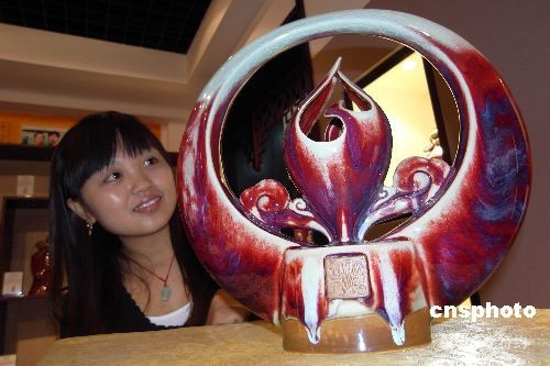 为庆祝第二十四个教师节,表达对教师的感谢和敬意,河南禹州荣昌钧瓷坊精心烧制出钧瓷作品《师恩瓶》,作品由抽象的牛首和燃烧的蜡烛造型构成,以孺子牛与蜡烛象征教师的奉献精神和高尚情操。中新社发 牛书培 摄