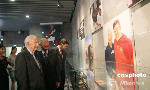 图:萨马兰奇参观何振梁与奥林匹克纪念馆