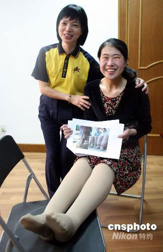 9月10日,江苏徐州“象腿女孩”王程手术痊愈从宝岛台湾返家。因罹患慢性下肢淋巴水肿,从6月9日开始,王程在台湾一医院进行免费的治疗,得到该院淋巴治疗中心主任许文宪等医务人员的精心照顾,终于康复出院。中新社发 雍君 摄