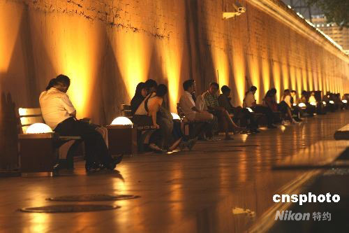 九月十四日,成双成对的青年情侣依偎在北京皇城根下,共赏中秋明月,共度美好时光。中新社发 史利 摄