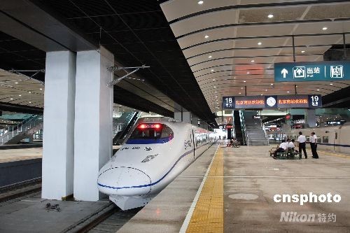 9月14日消息,京津城际高速铁路自开通以来,备受市民青睐,尤其在早晚高峰和周末更是“一票难求”。为了满足京津客流的高增长,北京铁路局于9月14日零时起,每天再增开十对动车组列车开行对数。中新社发 追影 摄