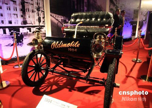 9月16日晚,通用汽车百年华诞庆典晚会在上海举行,多款古董汽车在红地毯上亮相,让上海人目睹了通用汽车的经典历程。图为1904年出产的奥兹莫比尔汽车,是世界上第一款大批量生产的汽车。中新社发 潘索菲 摄