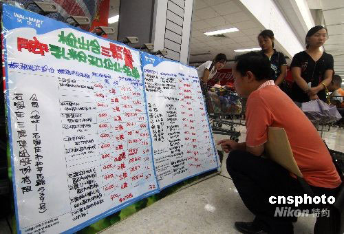 9月18日,来自湖南娄底市工商局的消息称,在国家质检总局通报了全国婴幼儿奶粉三聚氰胺含量抽检结果后,湖南娄底市市场目前已全部停售了三鹿、伊利、蒙牛、雅士利等22个厂家的69批次产品,各大卖场也同时设专柜接受已经购买“问题奶粉”的消费者的退货。中新社发 郭国权 摄