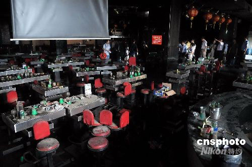 9月20日晚发生在深圳龙岗舞王俱乐部特大火灾事故已致40多人死亡,火灾事故因舞王俱乐部大厅演员表演施放烟火至天花板着火断电所致,当晚该俱乐部内约有近千人,事故亡者多为浓烟烟熏、踩踏致死。中新社发 陈文 摄