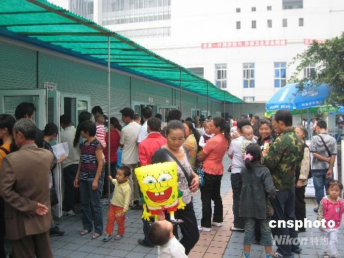 9月21日上午,首都-什邡对口支援医疗卫生队第二次向四川省什邡市人民医院增派3名队员,至此,该队先后两次共增派7名队员支援该院,加上原在该院工作的3名队员,共有10名首都医疗队员帮助该院开展食用“问题奶粉”的儿童筛查工作。 中新社发 张正尤 摄