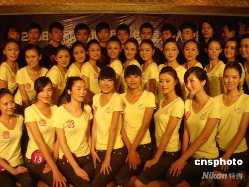 9月23日,入围2008年世界最佳模特大赛中国区总决赛的50名男女选手,在天津与媒体见面。这些选手来自北京、天津、山东等20多个省、市、自治区,其中女选手30名,男选手20名。中国区总决赛将于9月28日在天津东丽湖景区举行。中新社发 孙志民 摄