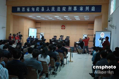 9月27日上午,陕西省安康市旬阳县人民法院公开开庭审理“华南虎照”造假者周正龙涉嫌诈骗罪和非法持有弹药罪一案。中新社发 邓浩军 摄